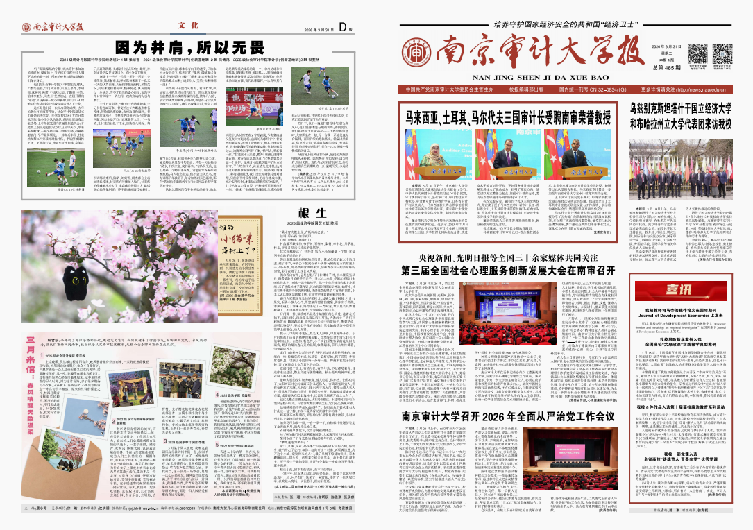 4月25日上午,南京審計(jì)大學(xué)2026年本科人才培養(yǎng)創(chuàng)新論壇在審計(jì)署審計(jì)干部教育學(xué)院學(xué)術(shù)報(bào)告廳舉行。論壇以“...