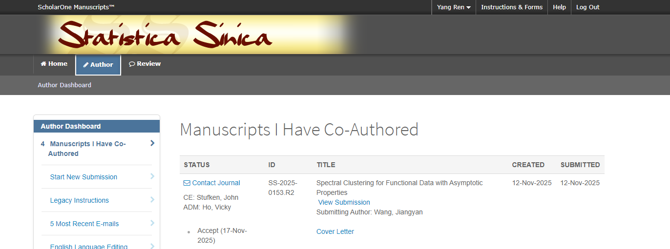 我校博士生論文被統(tǒng)計(jì)學(xué)權(quán)威期刊Statistica Sinica接收