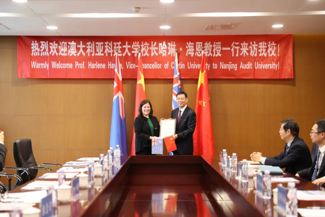 4月22日,南京審計大學(xué)中澳國際化教育高質(zhì)量發(fā)展論壇暨中澳合作項目校友聯(lián)誼會成立大會舉行,澳大利亞科廷大學(xué)校長哈琳·海恩、副校長張嘯天、副校長張雪影一行到訪我校。當(dāng)天下午,校長董必榮會見來賓,副校長李乾文,黨委宣傳部、會計學(xué)院、教務(wù)處、國際合作與交流辦公室等相關(guān)部門負責(zé)人參加會談,會議由李乾文主持。