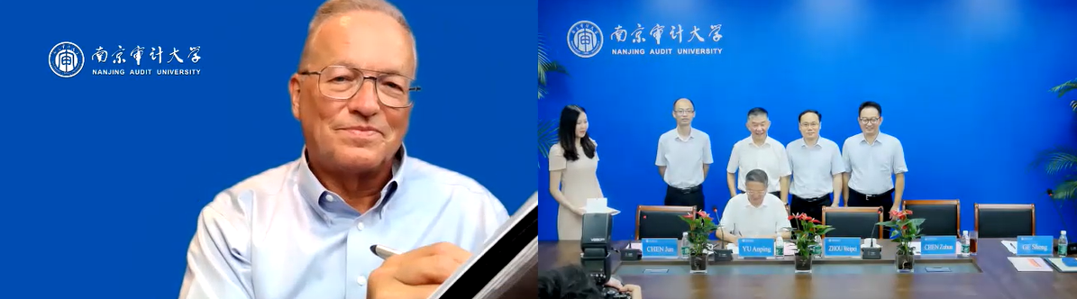 隨后,俞安平與理查德·錢伯斯通過視頻形式同步簽署南京審計(jì)大學(xué)海外榮譽(yù)院長聘用協(xié)議。